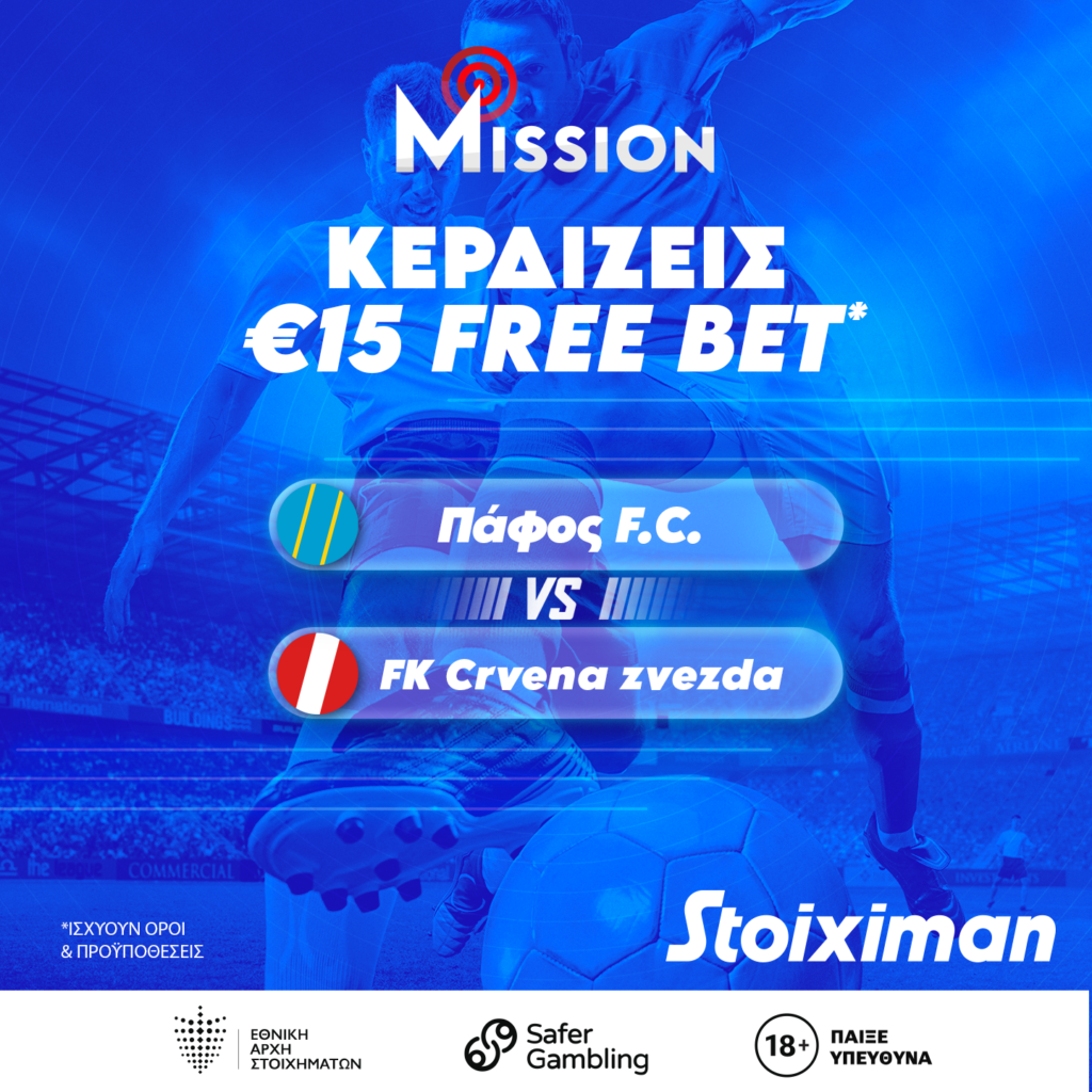 Stoiximan Mission με Super Έπαθλο* €15 Free Bet στο Πάφος-Ερυθρός Αστέρας